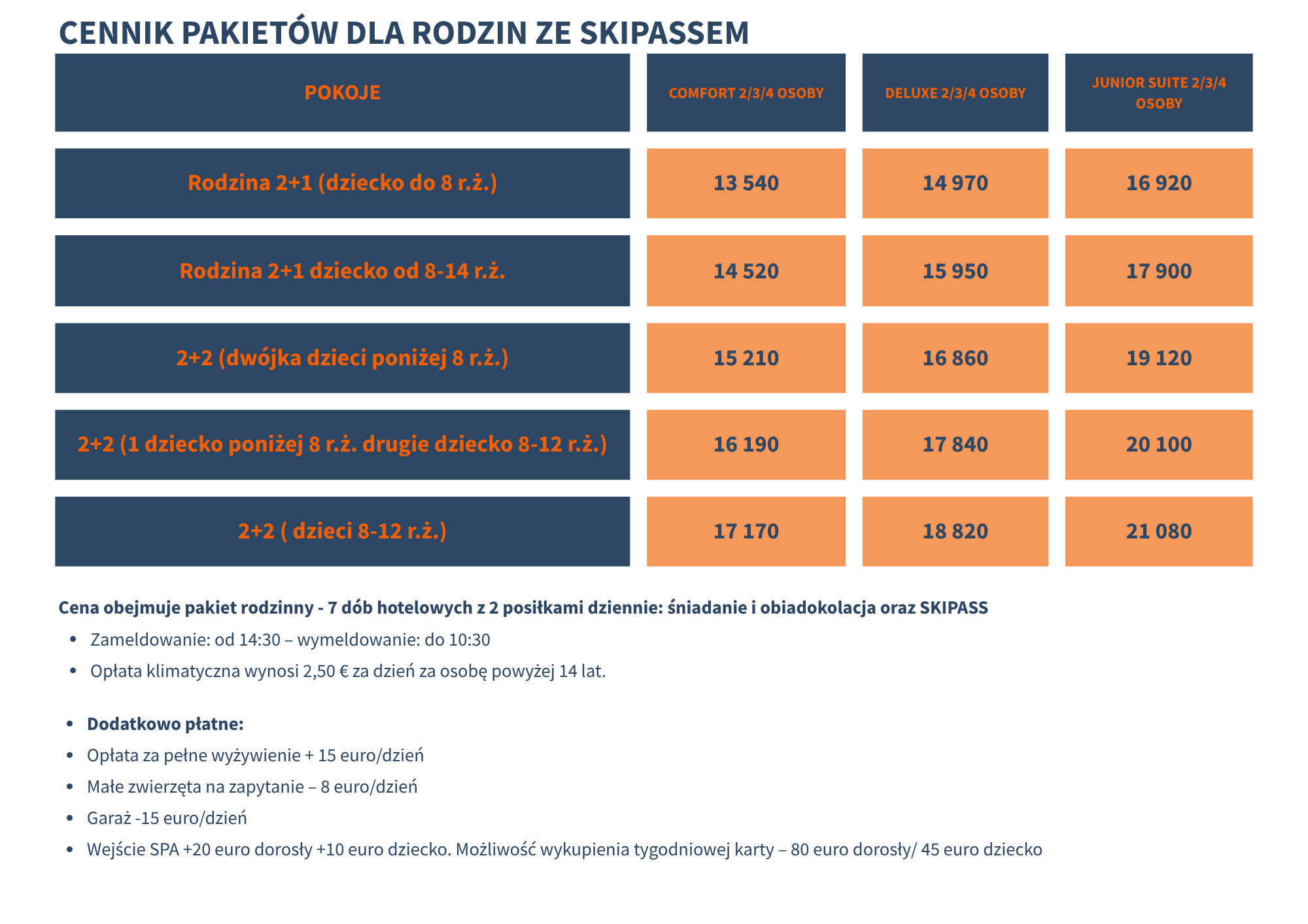 - Zakwaterowanie - Nasz czterogwiazdkowy Hotel Delle Alpi ****to hotel, w którym masz wszystko co potrzebujesz aby mieć wymarzone rodzinne wakacje w górach. Bliskość do stoku, zaledwie 150m od wyciągu Valbiolo czyni ten hotel numer jeden na naszej liście. Hotel położony jest na wysokości 1884 m.n.p.m., tym samym oferuje widoki na potężne alpejskie masywy Ortles‑Cevedale i Adamello oraz na lodowiec Presena, co nadaje mu wyjątkowy klimat i krajobrazowe tło. Na miejscu znajduje się rozbudowane centrum wellness - kryty i podgrzewany odkryty basen, jacuzzi, sauna, łaźnia turecka, grota solna oraz prysznice wrażeń i wodospady lodowe. Do dyspozycji jest także stylowa restauracja serwująca przepyszne dania kuchni regionalnej i międzynarodowej, bogato zaopatrzona wina (ponad 150 etykiet), bar, lounge oraz piwnica do degustacji. Wieczorem skorzystać można z sali dla rodzin i mini-klub dla dzieci.
